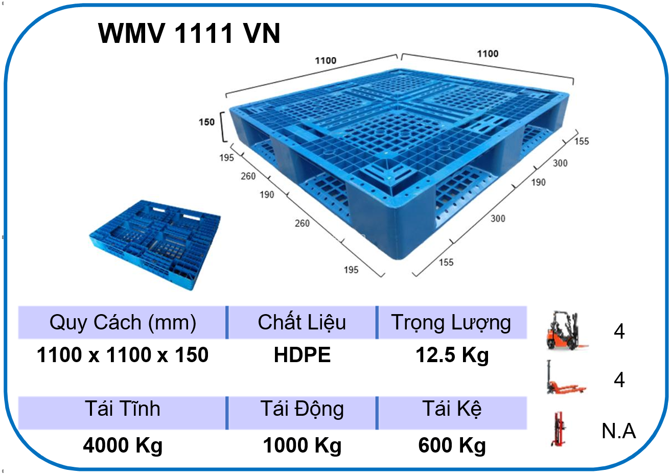 Pallet nhựa lưu kho WMV 1111 VN sản xuất tại Việt Nam | |||